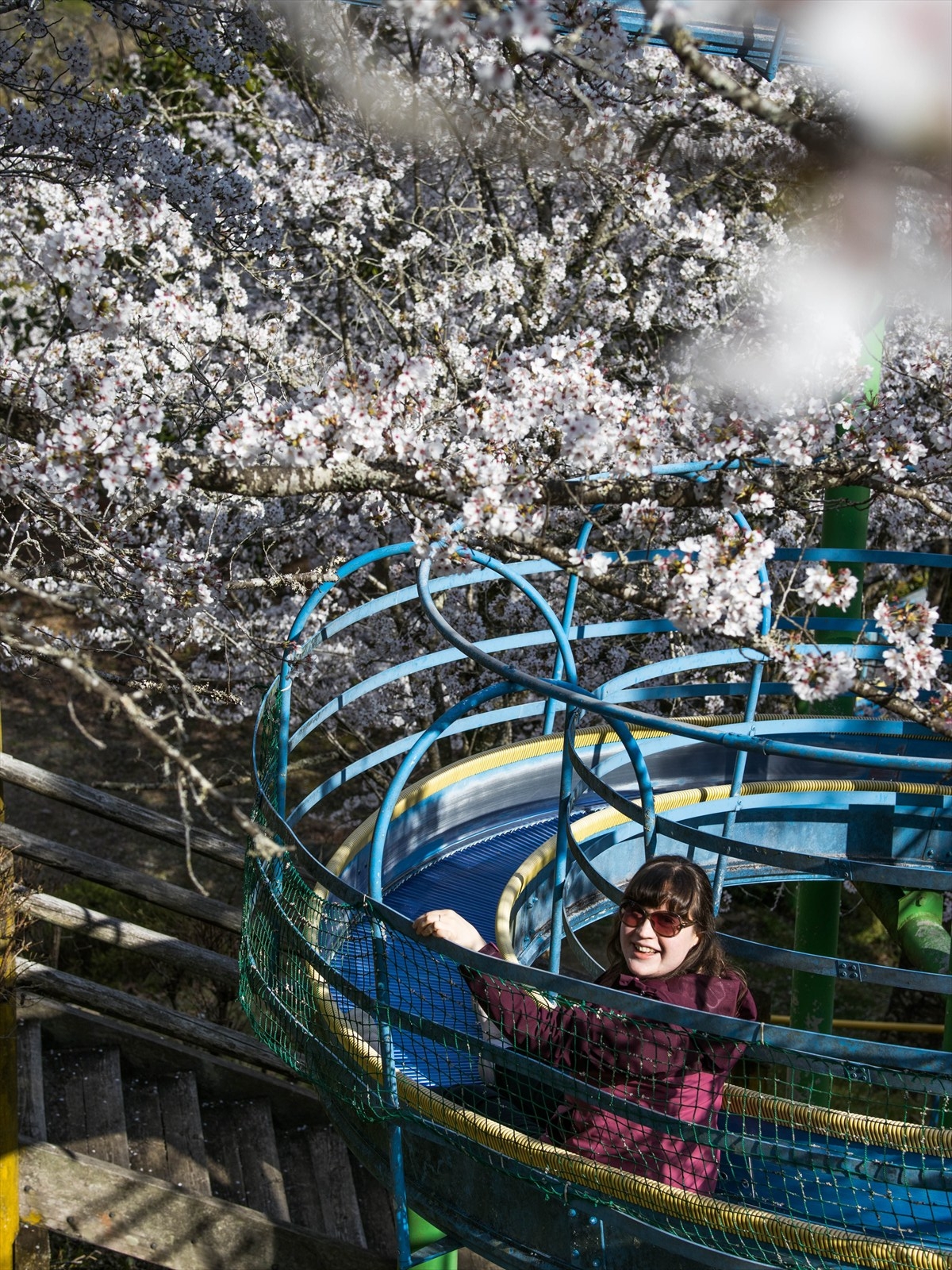 屋外アスレチック遊具 「レインボーオアシス・パーク」周辺やドッグラン近くで早咲きの桜を見ることができます🛝🌸