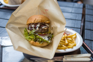 道の駅大歩危の中にある「Café&ジビエ」では、祖谷で獲れた猪肉と鹿肉100%の合い挽きパティを使用した人気のハンバーガーを味わうことができます。
