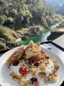 テラス席からは吉野川と四季折々の景色を写真に収めることができます。