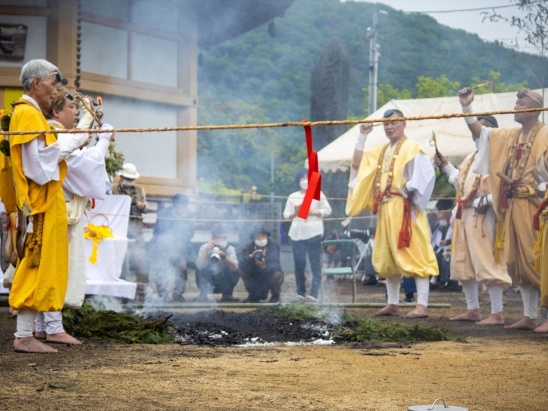 不動の火祭りは毎年密厳寺で行われている行事で護摩焚きの後、一般の方でも参加可能な熾火の上を素足で歩く火渡りも行われます。