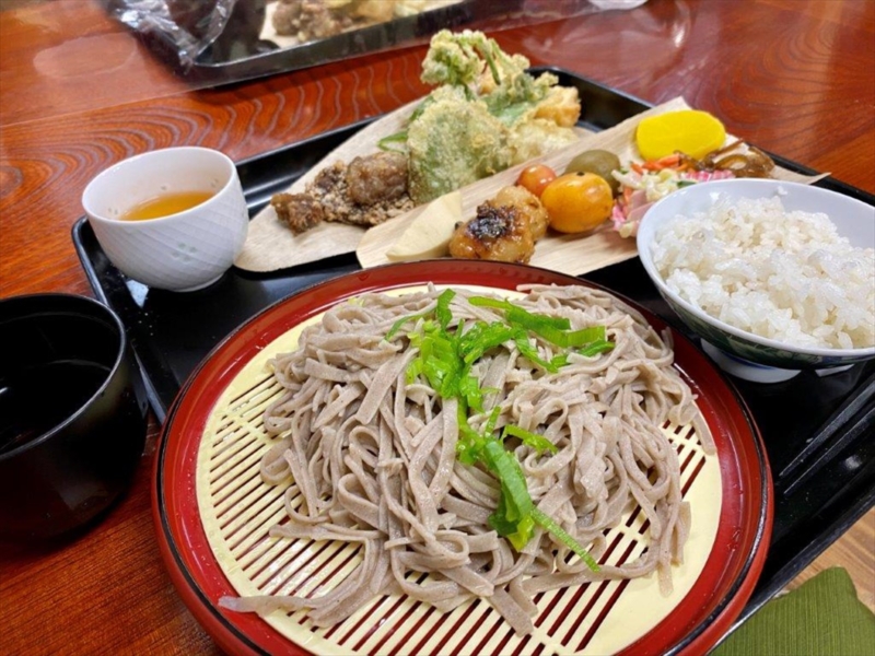 自分で打った、打ちたてのお蕎麦は絶品!山菜の天ぷらや雑穀ご飯、ジビエなどと一緒にそば御膳でお召し上がりください。