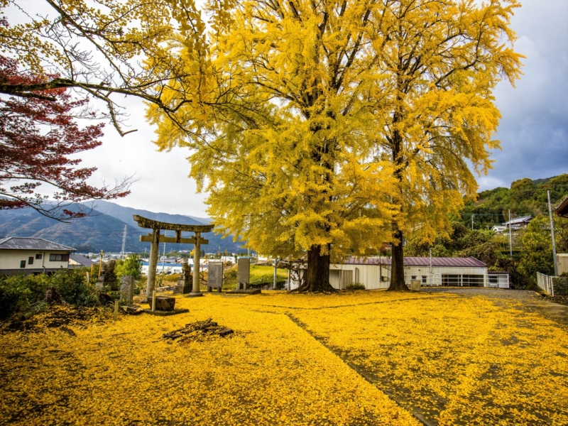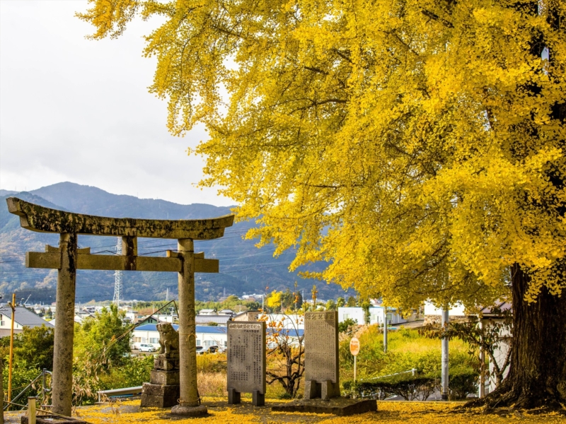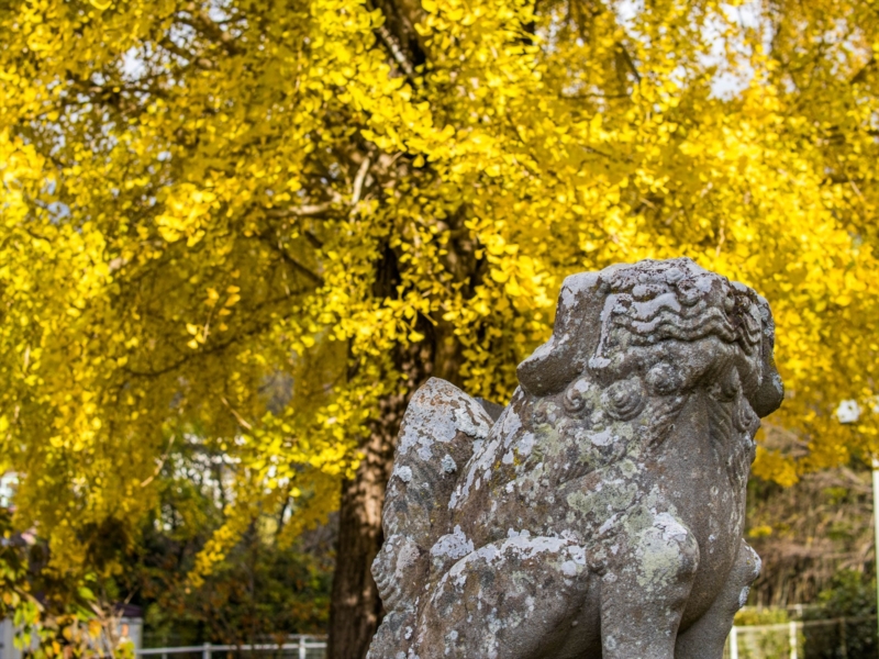 境内には大きなイチョウの木があり、秋には黄金色に染まる美しい景色が広がります。