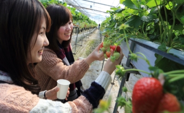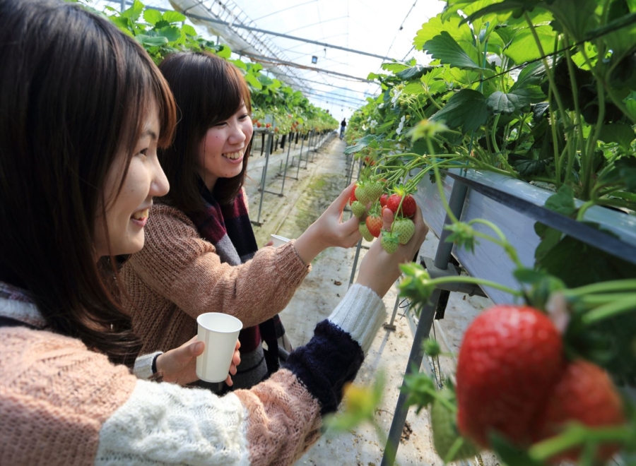 いちご狩りはしっかり45分。採れたていちごで作る大福は絶品。