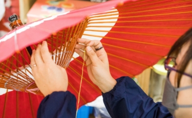 熟練の職人が一本一本手作業で仕上げる和傘は、細かな骨組みや繊細な貼り工程など、日本の伝統美が息づく逸品。