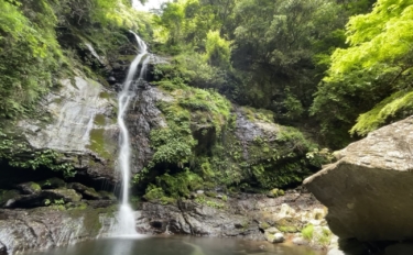緑に囲まれた静かな場所に佇む、高さ約85mの県下一の落差を誇る滝。