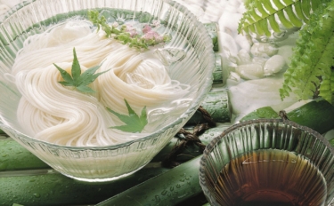 全国にファンを持つつるぎ町の郷土料理「半田そうめん」は、太くコシのある食感が特徴。