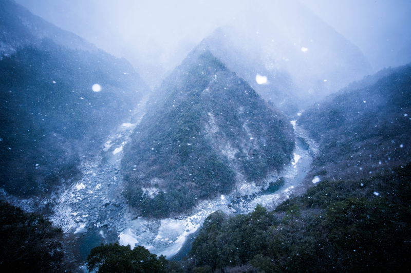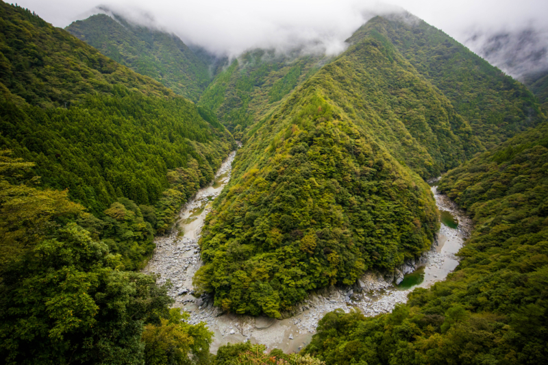 As a symbol of innocent courage, a statue of a peeing boy was constructed at the edge of the nearby precipice, the most perilous spot in Iya Valley. In the old days, it's said the local children would stand on this cliff and urinate into the ravine to show their bravado. A short drive away is also the iconic Hi no Ji Valley, shaped like a horseshoe, or the Japanese character for "hi".