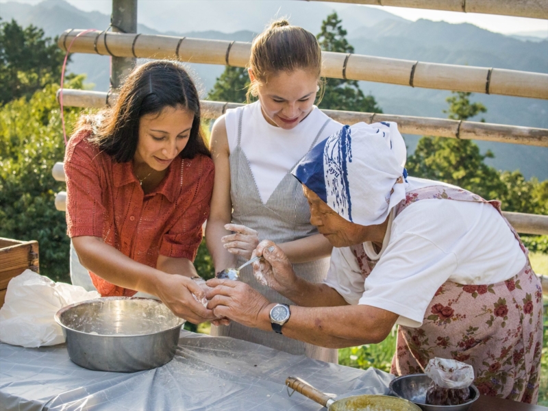 The Isogai Farm is located in a small mountain village in Tsurugi called Mikidochi. This area is recognized as a World Agricultural Heritage site for safeguarding traditional farming methods. Located at an altitude of about 400 meters, the farm enjoys gorgeous views of the surrounding mountains. As life here is quite remote, the Isogai family grow a variety of crops throughout the year, making for a wholly self-sufficient farm. Experience the bounties of this beautiful farm and make countryside dango together with the locals!