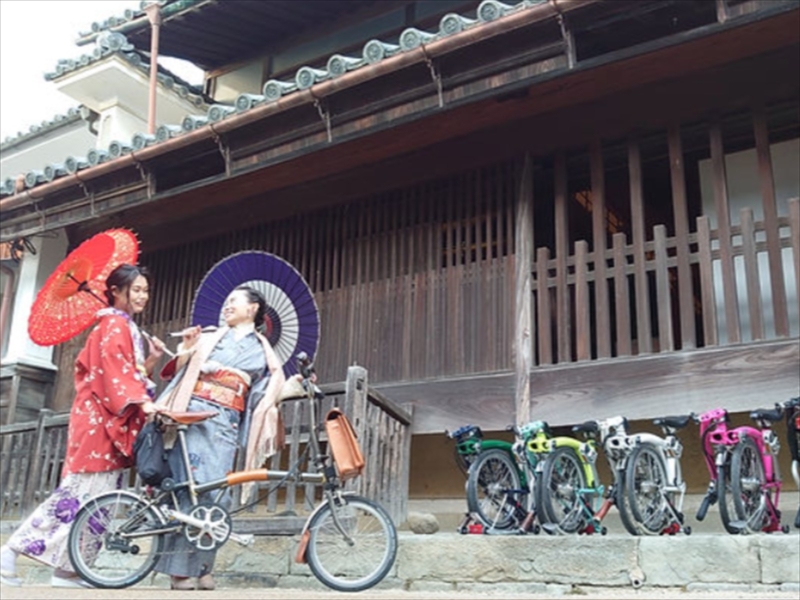 Ride a stylish British-made folding bike, the “Brompton,” and enjoy a relaxing cycling tour around the historic “Udatsu Townscape” lined with traditional buildings from the mid-Edo period, as well as the scenic Yoshino River area.