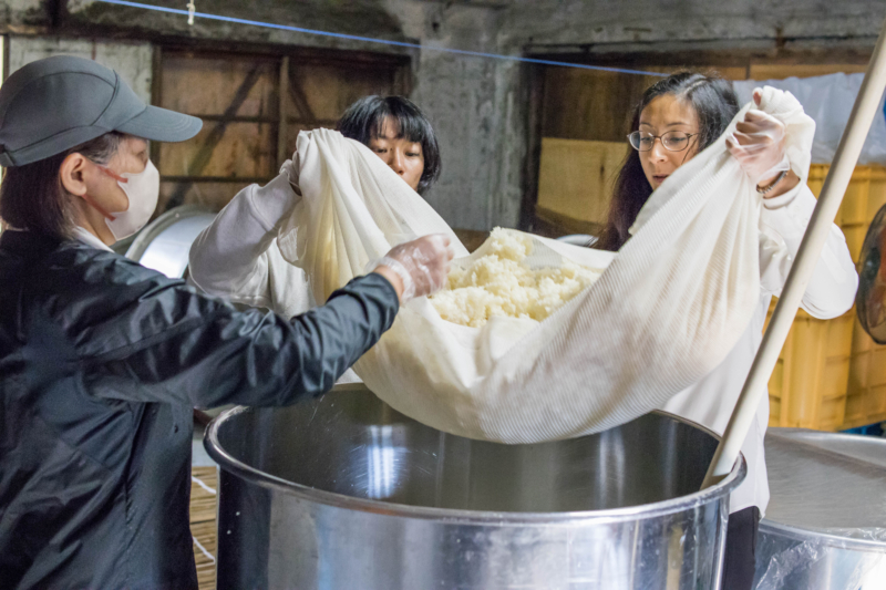 This small yet internationally recognized brewery exports its sake to the U.S., Taiwan, China, Singapore, Australia, and Mexico, and operates year-round. Depending on the season and time of visit, participants can observe and experience various brewing processes—such as steaming rice, adding koji mold, fermentation, sake pressing, or mixing moromi mash.