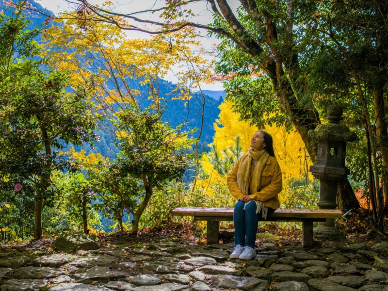 当館は、自然豊かな徳島県三好市西祖谷山村にあり、四季折々の表情を見せてくれ、庭には時代を見守り続けた老樹もあります。そんな中でタイムスリップしたような、ゆっくりしたお時間を過ごしていただけます。