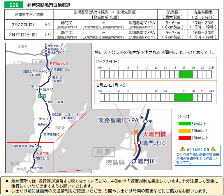 【2月21日~23日】神戸淡路鳴門自動車道をご利用予定のお客様へ(渋滞予測のお知らせ)
