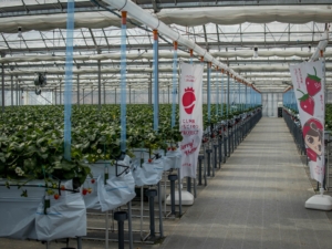 吉野川ハイウェイオアシスの東隣にあるビニールハウス内で、「恋みのり」「アスカルビー」「おいCベリー」「エンジェルエイト」の4品種と農業系ベンチャー企業が開発した試験栽培4品種を栽培しています。
